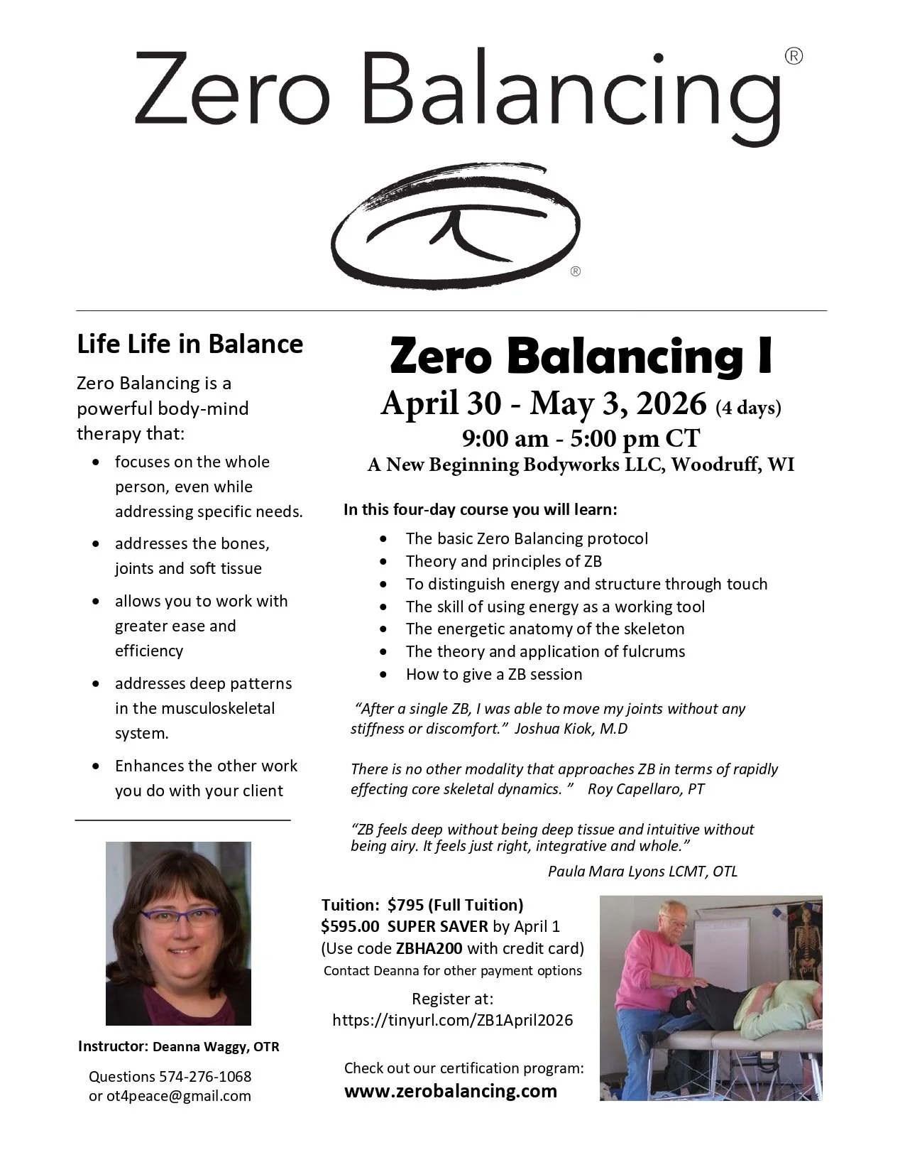 Payment is due at time of registration with A New Beginning Bodyworks. Call us at 715-358-0423 if you have any questions.